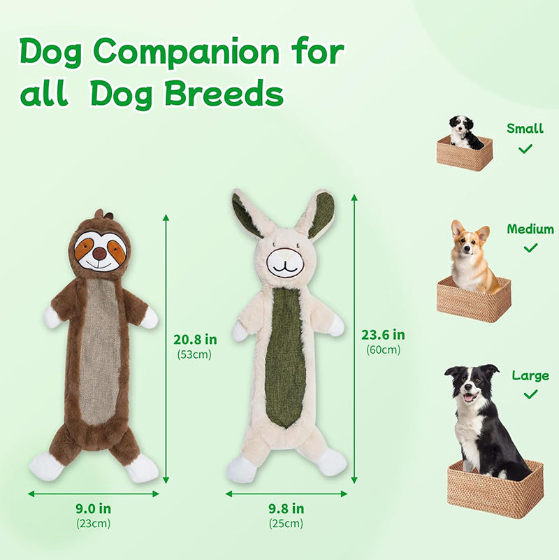 Your furry friend will love the soft and cuddly texture of these toys, making them perfect for both playtime and naptime. The charming rabbit and sloth characters are sure to become your dog's new favorite companions.